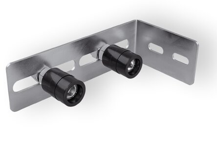 Horní vedení posuvné brány se dvěma regulovatelnými válci. Použití pokud výplň brány nepřesahuje rám.