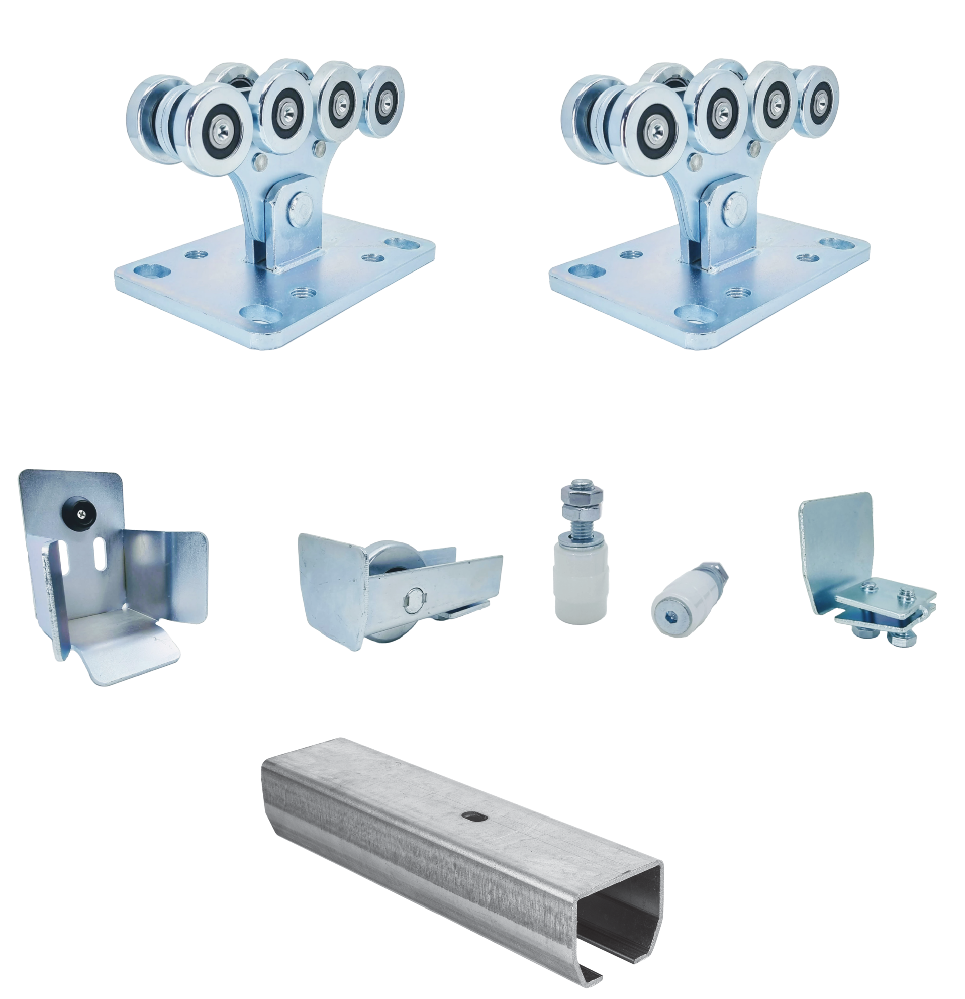 Sestava pro samonosné posuvné brány do 350kg. Vše co potřebujete pro zhotovení kvalitní samonosné posuvné brány bez pohonu.