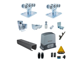 Sestavy kování pro konstrukci posuvných a křídlových bran s pohonem.
